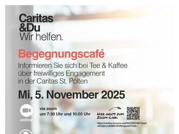 Um über die vielfältigen Möglichkeiten der freiwilligen Mitarbeit bei der Caritas St. Pölten zu informieren, lädt die Servicestelle Freiwilligenarbeit gemeinsam mit der Pfarr- und Regionalcaritas sowie füreinand‘ am 5. November zu einem Begegnungscafé. Einfach teilnehmen, Anmeldung nicht erforderlich.