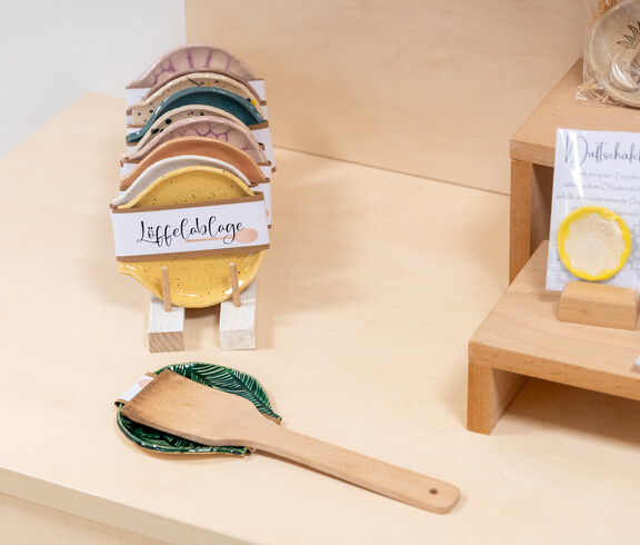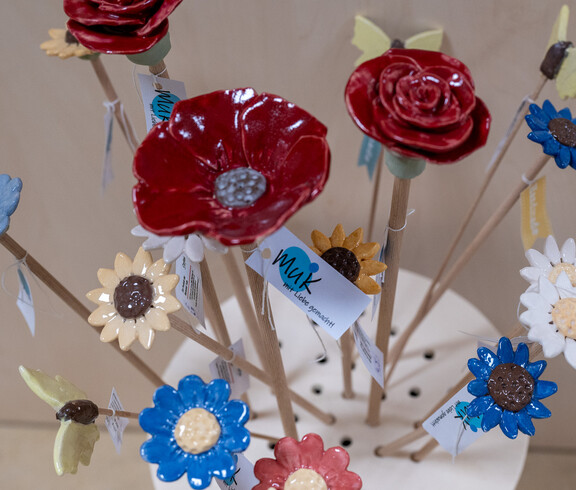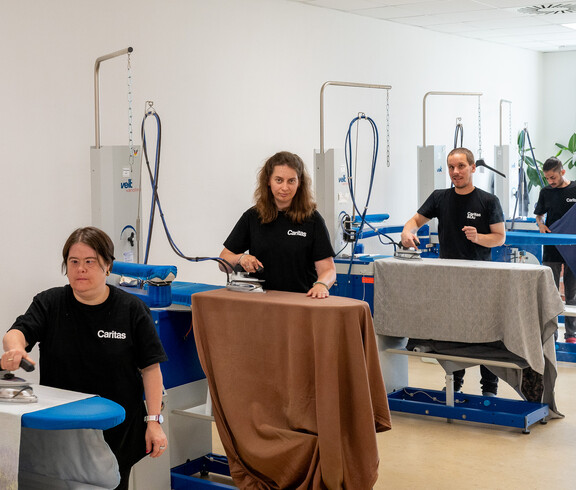 - Im Verkaufs-Laden mit Bügel-Service können 16 Menschen mit Behinderungen arbeiten.