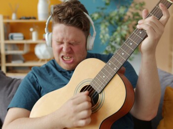 Ein Familienvater freut sich über gemeinsame musikalische Aktivitäten – musizieren, Konzerte besuchen oder einfach über Musik austauschen.