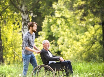 Tirol: Gestalte die Freizeit eines älteren Mannes im Rollstuhl