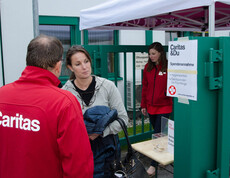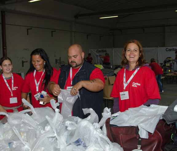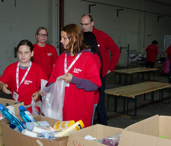 Überwältigend sind die Mitarbeit und das Engagement der Freiwilligen und die Unterstützung der Bevölkerung durch Sachspenden. Die Caritas koordiniert die Freiwilligenarbeit und die Sachspendenannahme und –ausgabe. Was gerade gebraucht wird, erfährt die Bevölkerung zeitaktuell über die Caritas Facebook-Seite und über die Caritas Homepage.