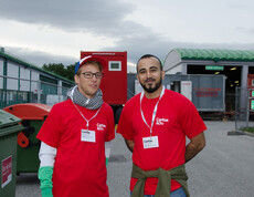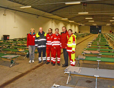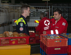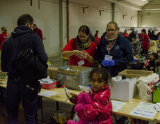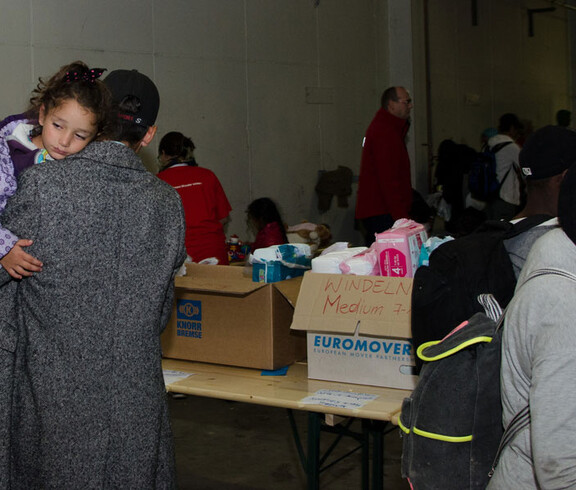 Seit Montagabend sind 330 Flüchtlinge in den Hallen des Wirtschaftshofes der Stadt St. Pölten untergebracht. Samariterbund, Rotes Kreuz und Caritas sorgen gemeinsam mit Bediensteten des Magistrates für die Betreuung und Verpflegung der Flüchtlinge.