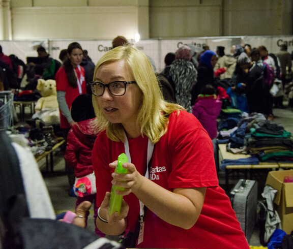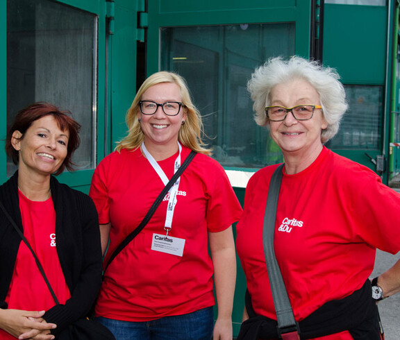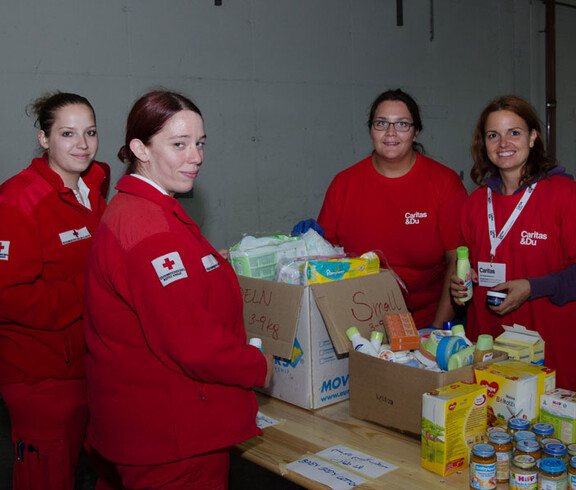 Caritas Einsatzleiterin ist Beate Schneider. Sie zeichnet auch verantwortlich für den neuen St. Pöltner Caritas Fachbereich Asyl und Integration. Unterstützt wird sie dabei von Margarita Stern (Sachspendenmanagement), Josef Höchtl (Logistik) Peter Mossgöller und Cornelia Gattringer(Freiwilligenarbeit).