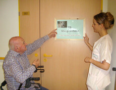 Auf unserer Station wurden kürzlich geminsam mit den Bewohnern Türschilder gestaltet. Da bei uns im Haus das psychobiographische Pflegemodell nach Böhm umgesetzt wird, ist es uns wichtig, den Bewohner aktiv miteinzubeziehen und, wie in diesem Fall, das Türschild auf dem biographischen Hintergrund individuell abzustimmen. Ziel ist es, dass sich die Bewohner leichter orientiern können und sich so auf der Station zurechtfinden.