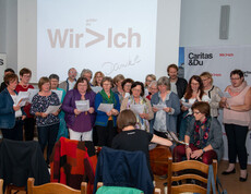 Im Rahmen der Feier hat Pater Karl Leisner-Becker die Segensbänder für die Haussammlung gesegnet. Die Veranstaltung wurde von einem eigens zusammengestellten Chor bestehend aus 25 HaussammlerInnen musikalisch begleitet.