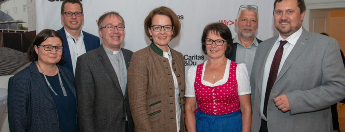Caritas Haussammlungsstart 2018 im Schloss Pöggstall, .v. l.: PfarrCaritas-Mitarbeiterin Christa Herzberger, Christoph Riedl-Daser (Caritas Bereichsleiter Solidarität, Kommunikation & Soziales), Haussammler Pfarrer Hans Lagler (Pfarre Steinakirchen), Landesrätin Christiane Teschl-Hofmeister, Haussammlerin Marianne Kreutner (Pfarre Steinakirchen), PfarrCaritasleiter Christian Köstler, Caritasdirektor Hannes Ziselsberger.