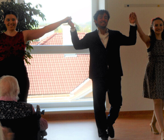 Mit einem bunten musikalischen Blumenstrauß begeisterte die Gruppe Fritzsche-Gebauer aus Wien unsere Bewohnerinnen und Bewohner. Viele vertraute Melodien wurden zum Besten gegeben, der Musikreigen spannte sich von J. Strauss, Verdi, Millöcker, und Bernstein. Als Draufgabe hörten wir aus dem Spielfilm das „Weisse Rössl“ eine Potpourri. Begeisterte BewohnerInnen erlebten einen wunderbaren Konzertnachmittag.