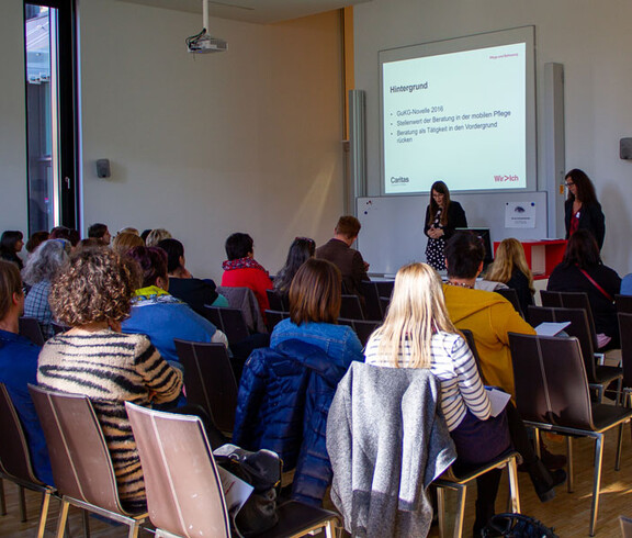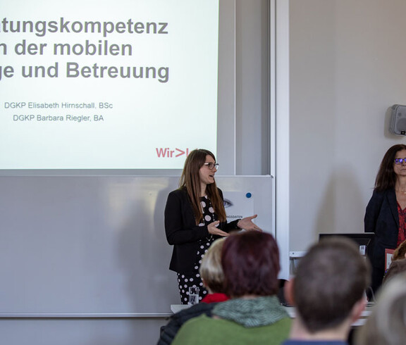 Am 6. und 7. November 2019 waren Mitarbeiterinnen der Caritas Pflege am Pflegesymposium an der IMC Krems vertreten. Barbara Riegler und Elisabeth Hirnschall berichteten dabei aus ihren praktischen Erfahrungen zum Thema "Beratungskompetenz in der mobilen Pflege und Betreuung".