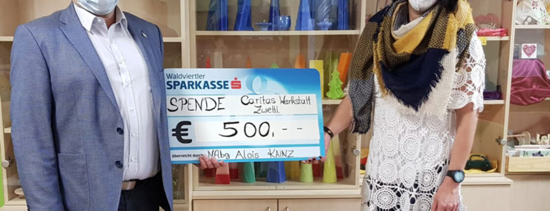 Am Freitag den 4. Dezember überreichte FPÖ Nationalratsabgeordneter und Bezirksparteiobmann von Zwettl Alois Kainz einen Scheck in Höhe von 500€ für die Caritas Werkstatt in Zwettl. „Ich finde die Caritas leistet hier wirklich einen wichtigen Beitrag für unsere Gesellschaft. Jeder Mensch braucht Beschäftigung, aber für Menschen mit Behinderung ist es leider oftmals nicht leicht Arbeit zu finden. In der Caritas Werkstatt hier in Zwettl können Sie ihrer Kreativität freien Lauf lassen und selbst Produkte herstellen,“ so Alois Kainz. „Ich hoffe, dass ich mit meiner kleinen Spende die Adventzeit etwas versüßen konnte. Falls Sie noch auf der Suche nach dem richtigen Weihnachtsgeschenk sind, kann ich einen Besuch in der Caritas Werkstatt nur empfehlen. Ob schöne Kerzen oder ein nettes Vogelhäuschen, hier werden Sie fündig. Die Produkte sind außerdem nicht nur regional von Hand produziert, sondern auch mit ganz viel Liebe,“ so Kainz.