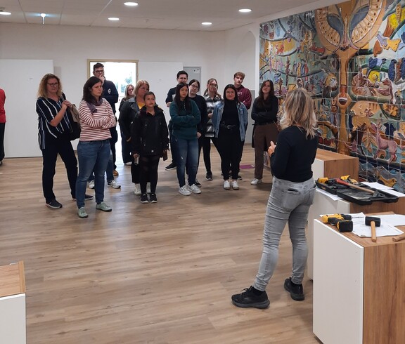 Am Montag, 16.10.2023, besuchten die Studierenden der 1 SOB (Fachklasse 4) im Ausbildungsschwerpunkt Behindertenarbeit, das Caritas Wohnheim St. Leonhard am Forst. Die Exkursion ergänzte den Theoriebereich Lebenswelt Wohnen, um die praktische Einsicht in den Alltag der Bewohner*innen und Betreuer*innen des Wohnheims. Die Leiterin, Doris Köninger, und ihr Team informierten uns ausführlich über die Wohnraumgestaltung, die Wohnraumanpassung und Planung für barrierefreies Leben, die Alltagsgestaltung in Bezug auf den Haushalt, Einkaufen, Hygiene etc. und das Wohnen als elementares Bedürfnis.