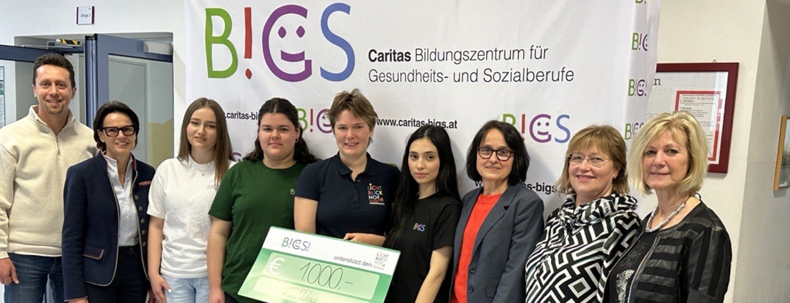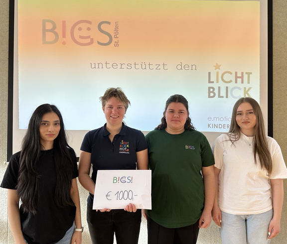 Der Betrag wurde am 24. Jänner 2024 an Frau Wolf vom „Lichtblickhof“ übergeben. Der Lichtblickhof ist ein Hospiz, in dem Kinder mit schwersten Erkrankungen oder Traumata begleitet werden. Frau Wolf zeigte sich sichtlich beeindruckt vom Engagement der Schüler*innen und Lehrkräfte des BiGS und betonte, dass die Betreuung der kranken Kinder im Lichtblickhof nur durch Spenden möglich sei.