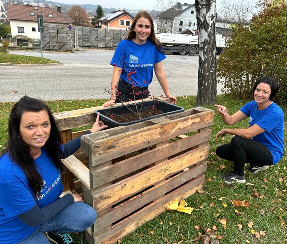 Gemeinsam wurde die Gartenhütte adaptiert, neue Hochbeete errichtet und eine Gartenbank upgecycelt – mit viel Einsatz, Kreativität und Freude an der gemeinsamen Arbeit. Die Stadtgemeinde Zwettl hat dafür die benötigte Erde zur Verfügung gestellt.